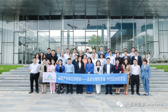 光明区区长蔡颖,光明区常务副区长刘德峰,区工信局、发改局、市规自局光明管理局、科创局、教育局、人力资源局、住建局等光明区各职能部门领导出席座谈并现场办公。施洪峰出席座谈会后表示,光明科学城具有极其重要的科创战略地位,希望能和光明区加强密切合作,在光伏新能源战略上拓展出全球视野和世界一流产业价值。 座谈会上,蔡颖区长对深圳“战新会”企业家们的到来表示热烈欢迎,并围绕“集中度、显示度、高质量、高颜值”四大主题词,向与会企业家描绘了未来5年光明的美好蓝图。她表示,在打造世界一流科学城的目标下,光明在加快建设综合性国家科学中心先行启动区,打造科学创新生态链,走科技与产业深度融合的 “科研经济” 新路子,争做代表深圳参与未来科技竞争的第一艘冲锋舟。根据“战新”产业特点,蔡颖重点介绍了符合“战新”产业的有关规划和政策,“作为国家科学城的定位,光明区坚持大科学的发展方向和产城融合发展理念,源头创新能力大幅提升,重大科技基础设施集群初具规模,欢迎广大优质企业参与到光明新发展中来”, 蔡颖说。