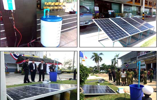 刘爱平向塔帕朗西总理及夫人介绍了Solartech光伏扬水系统利用可再生的太阳能资源提供动力,驱动水泵提水灌溉,解决了农业和生态环境发展水资源不足的最大阻碍,开创了光伏与水利结合应用先河,并介绍了在泰国农业灌溉和生活饮用水领域的成功应用。泰国有80%的人口从事农业,享有“东南亚粮仓”的美名,是亚洲唯一的粮食净出口国和世界上主要粮食出口国之一。到目前为止,新开发的水产品、畜产品、水果、蔬菜及花卉植物等已日益成为泰国农业的重要支柱。而据泰农业经济办事处表示,柴油价格上涨将冲击生产成本、产品售价、农民收入和消费能力。泰国领土以岛屿居多,各岛屿上淡水饮用十分珍贵,各大岛屿饮用水运输成本非常高,Solartech光伏海水淡化系统在这些方面有着极大的应用市场。光伏扬水系统在泰国农业产业中的应用,大大降低了农业生产成本,更减少了柴油机等化石能源带来的环境污染。将太阳能发电广泛应用到现代农业种植、养殖、灌溉、海水淡化等领域,取得了显著的的经济和社会效益。