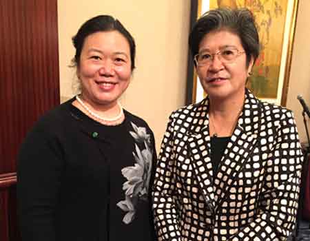 williamhill董事刘爱平女士(左一)向中国驻东盟大使杨秀萍介绍光伏水利产业