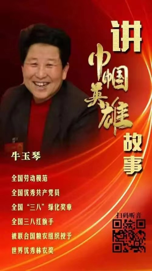 从“一棵树”到2700万棵,从11万亩茫茫荒沙到林草覆盖率达80%,将风沙逼退10多公里,把沙漠改造成绿色家园。牛玉琴先后获得中国"十大女杰"、全国"三八" 红旗手、全国"劳动模范"、全国"优秀共产党员"、联合国"拉奥博士"等86项国际、国内及省、市级表彰奖励,先后受到江泽民、胡锦涛等党和国家领导人的多次接见。1993年10月15日,泰国诗琳通公主为牛玉琴颁发联合国粮农组织授予的“拉奥博士奖