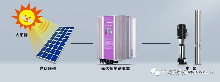 光伏扬水系统,使用来自太阳的持久能源,提供基于成本效益优势的可再生能源解决方案,可以在任何地方快速建设,不需要电力基础设施,不需要储能电池装置,系统全自动智能运行,有效降低了人工管理和维护成本。