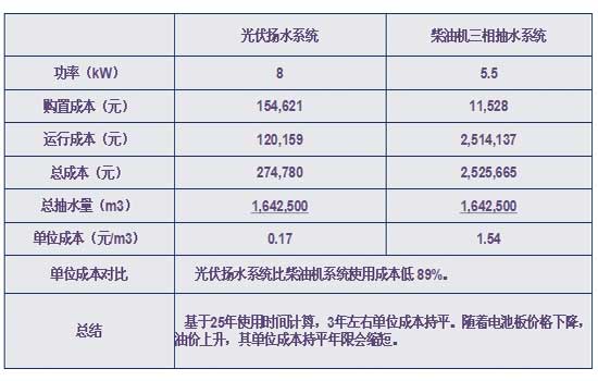 Solartech 光伏扬水系统与柴油机系统经济性对比